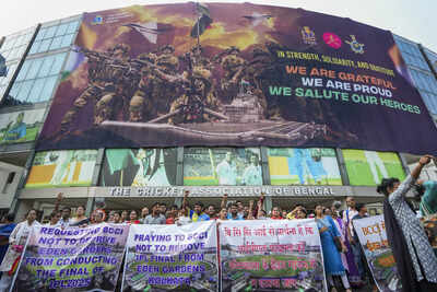 [ad_1] Kolkata: Cricket lovers raise slogans as they gather in front of the Eden Gardens stadium, requesting BCCI to not